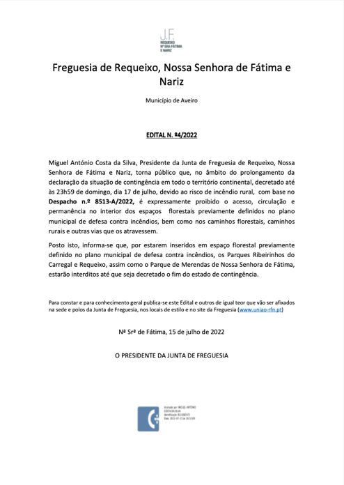 Para constar e para conhecimento geral, publica-se este Edital e outros de igual teor que vão ser afixados na sede e polos da Junta de Freguesia, nos locais de estilo e no site da Freguesia.