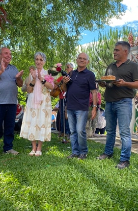 Havendo dois aniversariantes, a D. Odete e o Sr. Manuel Neto, a Junta de Freguesia não podia deixar de os parabenizar proporcionado uma singela surpresa. Para terminar foi servido a todos taça de espumante produzido em Nariz, enaltecendo assim a produção que está enquadrada na Rota da Bairrada.