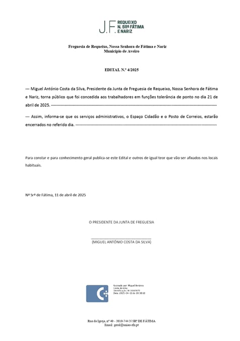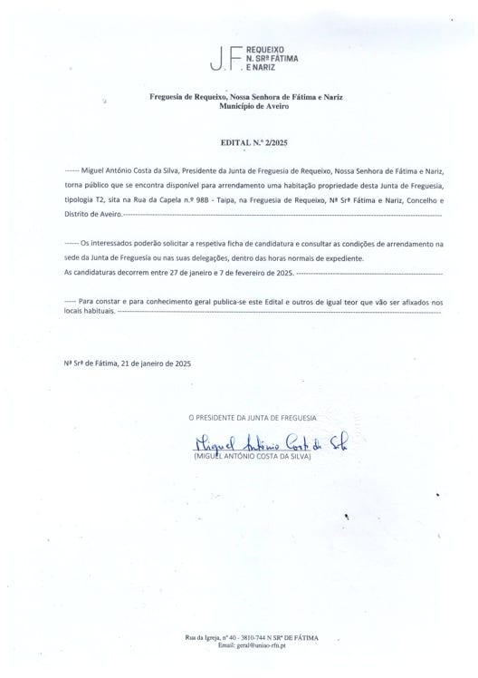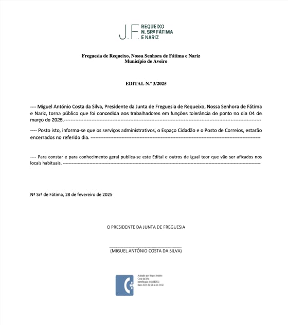 Assembleia de Freguesia de Requeixo, N. Srª de Fátima e Nariz
