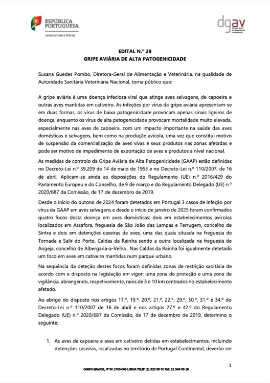GRIPE AVIÁRIA DE ALTA PATOGENICIDADE