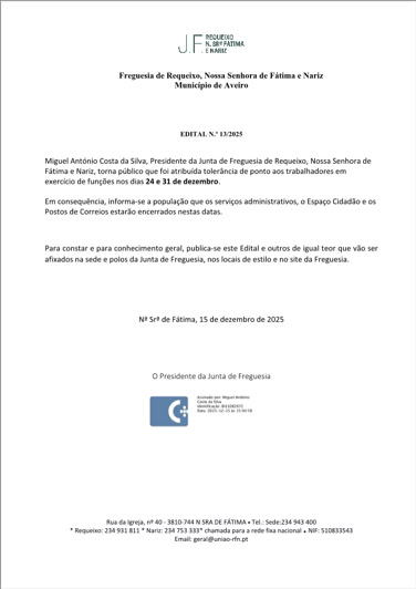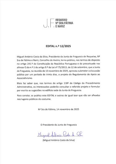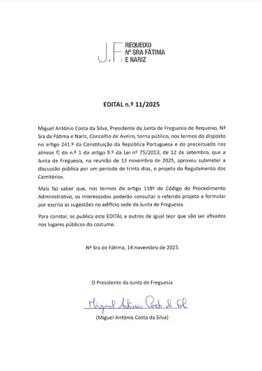 Assembleia de Freguesia de Requeixo, N. Srª de Fátima e Nariz
